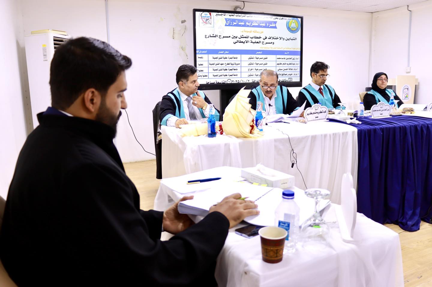 A master's thesis at the Faculty of Fine Arts, University of Basra, examined the contrast and difference in the actor's speech between the street theater and the Italian box theater.