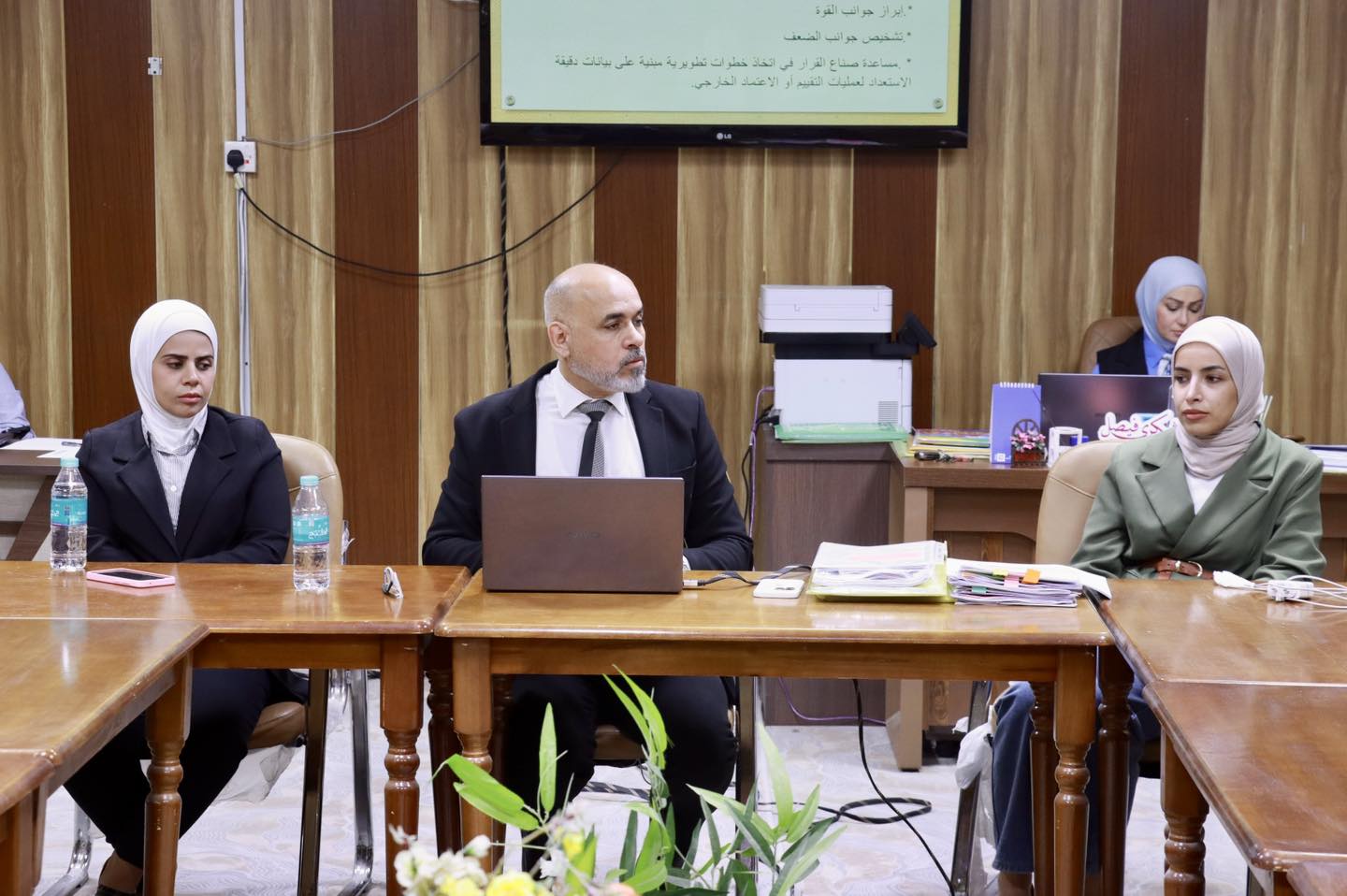 The seminar was presented by Prof. Dr. Seifeddine Abdel Wadud, assistant teacher Saba Jawad Nima, and assistant teacher Doaa Ali Malik, where they discussed the most prominent quality tools adopted in modern institutions, foremost of which are conformity reports and improvement plans. During the seminar, it was explained how to use these tools to analyze the institutional reality, identify gaps, and develop ways to improve performance and improve the level of services.