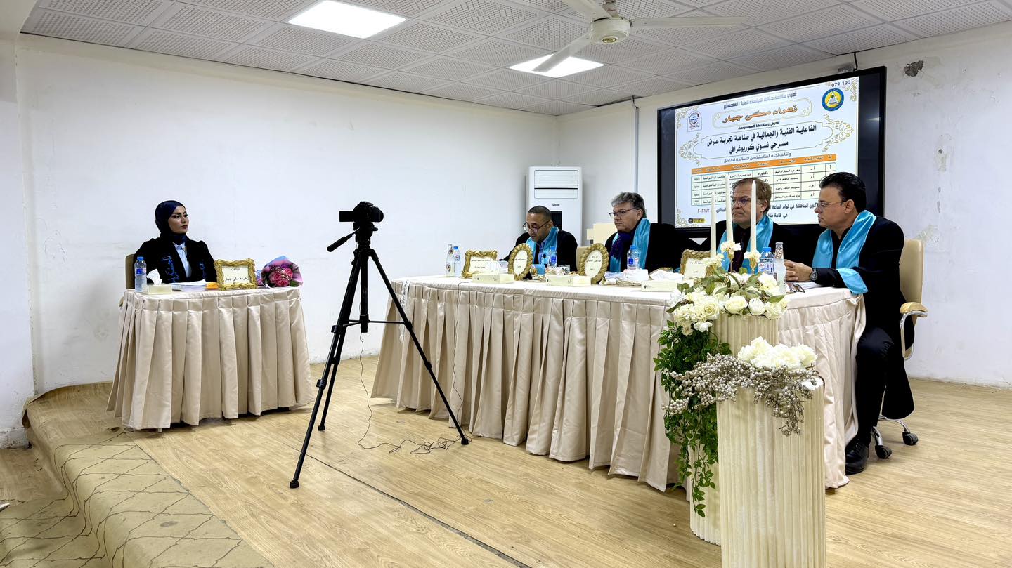 The thesis presented by researcher Zahra Makki Jabbar aims to identify the nature of the advancement of women's ability in the fine arts through a specialized training experience in theater directing that adopts the production of a show in the style of choreography to promote the psychological, cognitive and artistic behavior of the producer category.