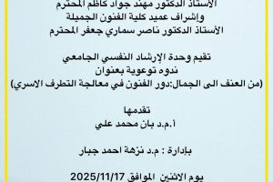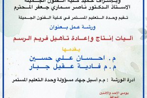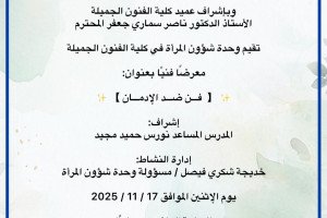 The Faculty of Fine Arts, Department of Plastic Arts organized an exhibition of the products of the students of the initial study entitled A brush trip on the Great Exhibition Hall in the department, which was opened by the dean of the Faculty of Fine Arts, Prof. Dr. Abdul Sattar Abdul Thabet al-Baydani and attended by a group of professors, staff and students of the faculty.