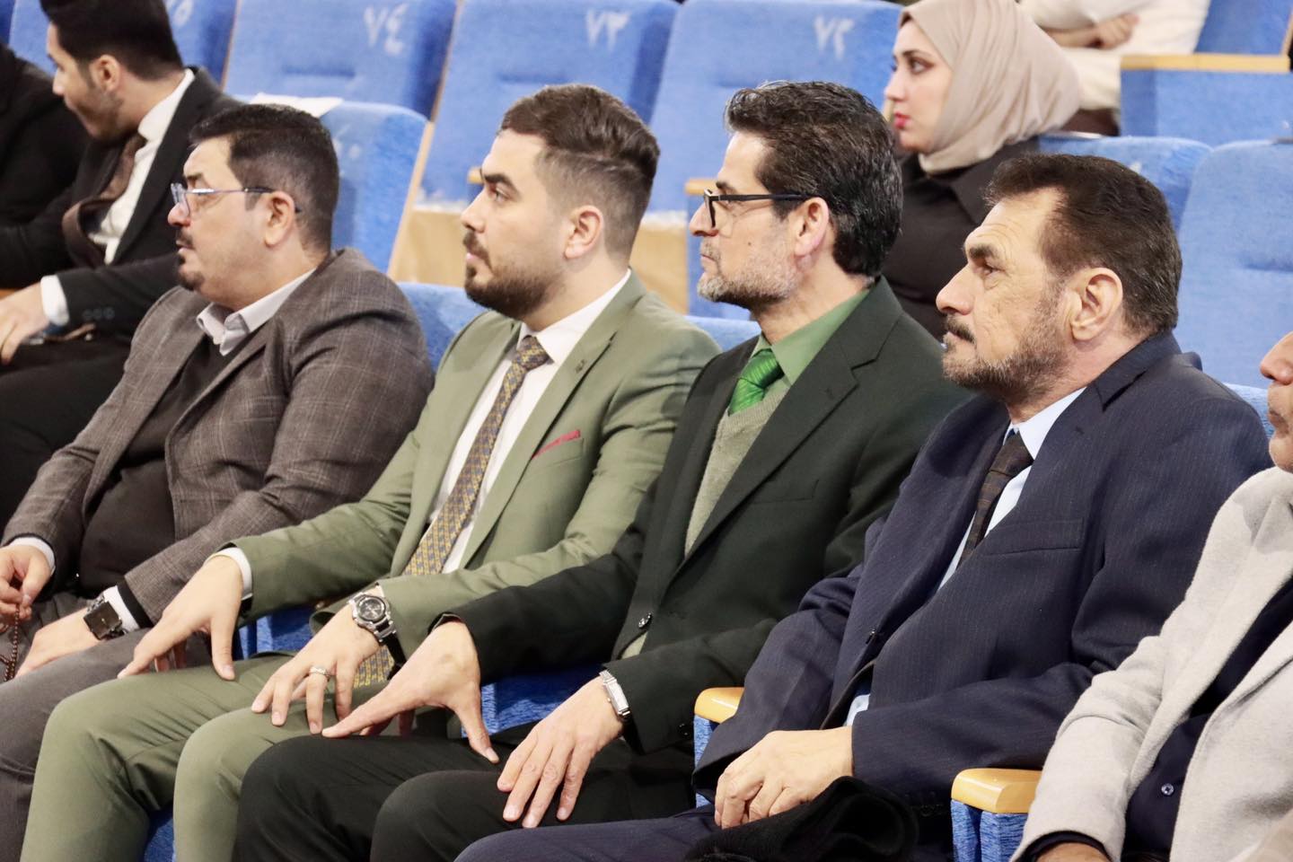 The ceremony was held in the presence of the dean of the Faculty of Fine Arts, Dr. Nasser Samari Jafar, his scientific and administrative assistants, members of the Ministerial Committee in charge of assessing the scientific and academic reality, as well as the head of the Department of musical arts, a number of faculty teachers, staff and students, and a gathering of college students and families of honored students.