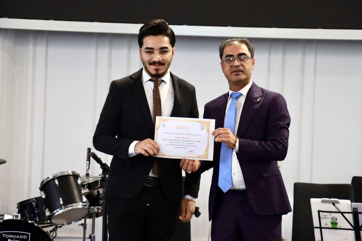 The ceremony included the presentation of outstanding musical performances by the professors of the department and its students, which reflected the level of artistic and skilled performance enjoyed by The Musical Arts staff, and concluded its activities with the distribution of awards and certificates of appreciation to the first students, amid a festive atmosphere that expressed pride in their achievements and support for their future educational career.